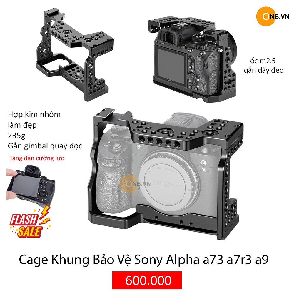 Cage khung bảo vệ Sony a73 a7iii, a7r3 vừa bảo vệ máy chống trày , đồng thời hỗ trợ qauy tối ưu - gắn phụ kiện quay phim, micro, đèn ... gắn lên Gimbal quay dọc.