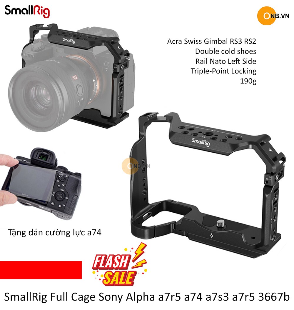 +Mẫu khung Smallrig 3667b dùng chung 3 dòng Sony Alpha a74-a7s3-a1 tiện lợi. Đi kèm có module nhỏ chuyển đổi giữa dòng máy.
